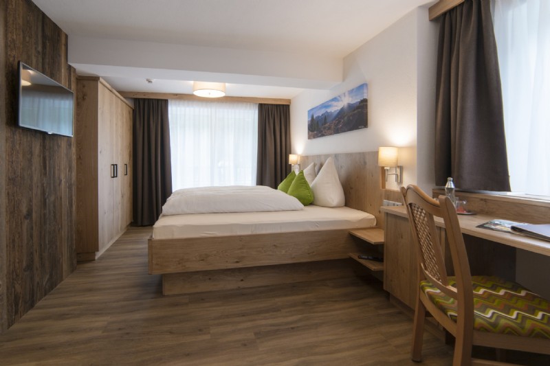 New spacious natural wood room in the modern country house style with double bed in comfort height - bathroom with shower, WC, hairdryer, Flat-TV with SAT-reception and Stubai TV, telephone, free W-LAN, safe - most of it with balcony and wonderful view of the Stubai glacier and the surrounding mountain landscape